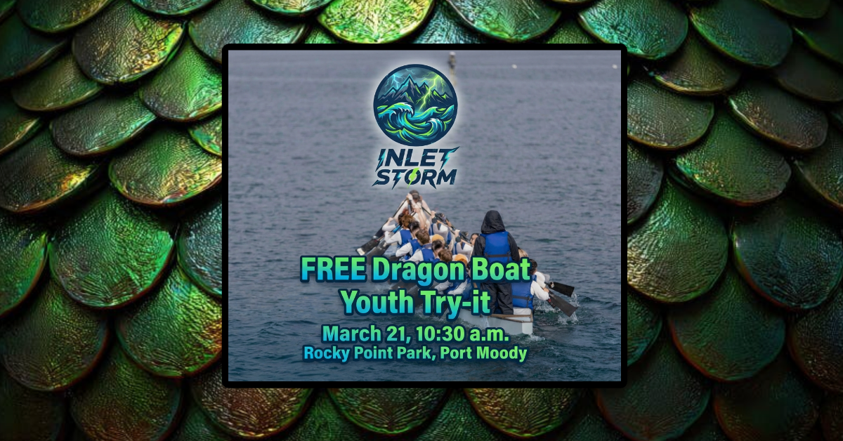 This recruitment paddle is part of the launch of INLET STORM, a new Junior and U24 dragon boat team based in Port Moody. The program is designed to introduce young paddlers to the sport while building a fun and supportive team environment.